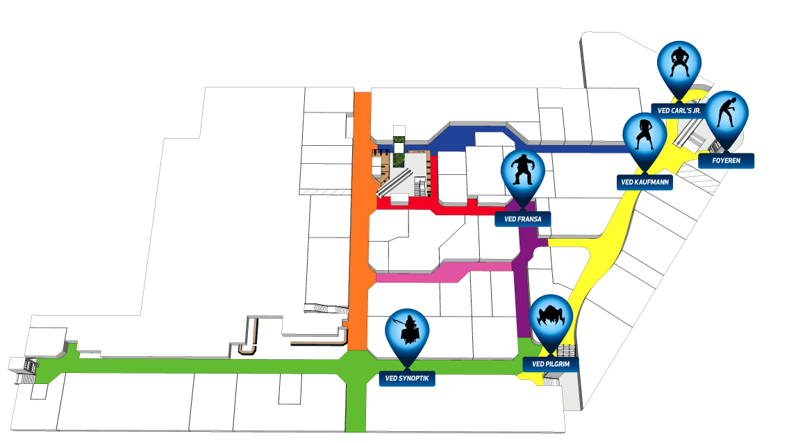 Scan QR-koderne rundt i centret, skyd de 6 monstre og indløs din præmie i foyeren.